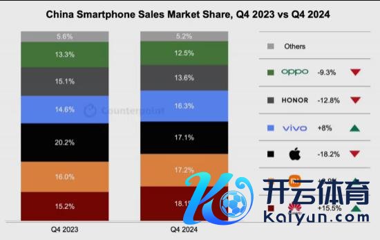 【CNMO 科技音尘】1 月 21 日,CNMO 了解到,调研机构 CounterPoint Research 公布了 2024 年第四季度的中国智高东说念主机商场数据。其中,华为重归国内智高东说念主机份额第一。
